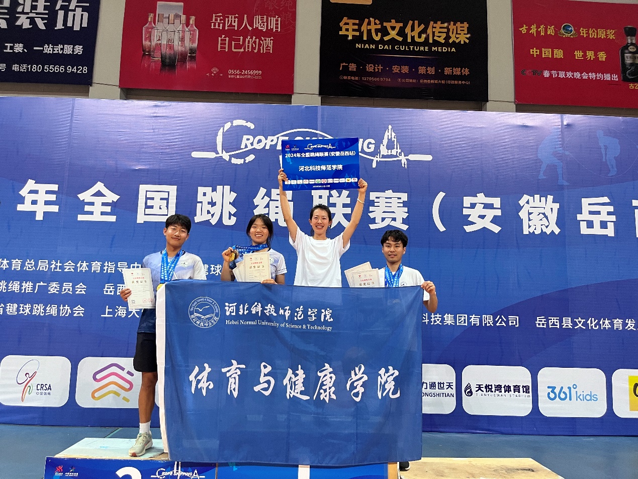 5月17日至20日,2024年全國跳繩聯(lián)賽(安徽岳西站)在岳?縣天悅灣體育館舉行。經(jīng)過兩天激烈的?逐,我校“KSY花樣跳繩隊”的隊員表現(xiàn)突出,分別在女子3分鐘單搖跳和女子30秒單搖跳2項比賽中獲得冠軍、男子30秒間隔交叉跳冠軍,同時獲得混合組2×30秒雙搖跳亞軍、男子個人花樣三級亞軍、三分鐘單搖跳亞軍、女子個人花樣三級季軍,男子30秒單搖跳季軍。這是我校首次參加全國花樣跳繩比賽,充分展現(xiàn)了我校大學(xué)生朝氣蓬勃、團結(jié)進取、永不服輸?shù)木瘛?/span>