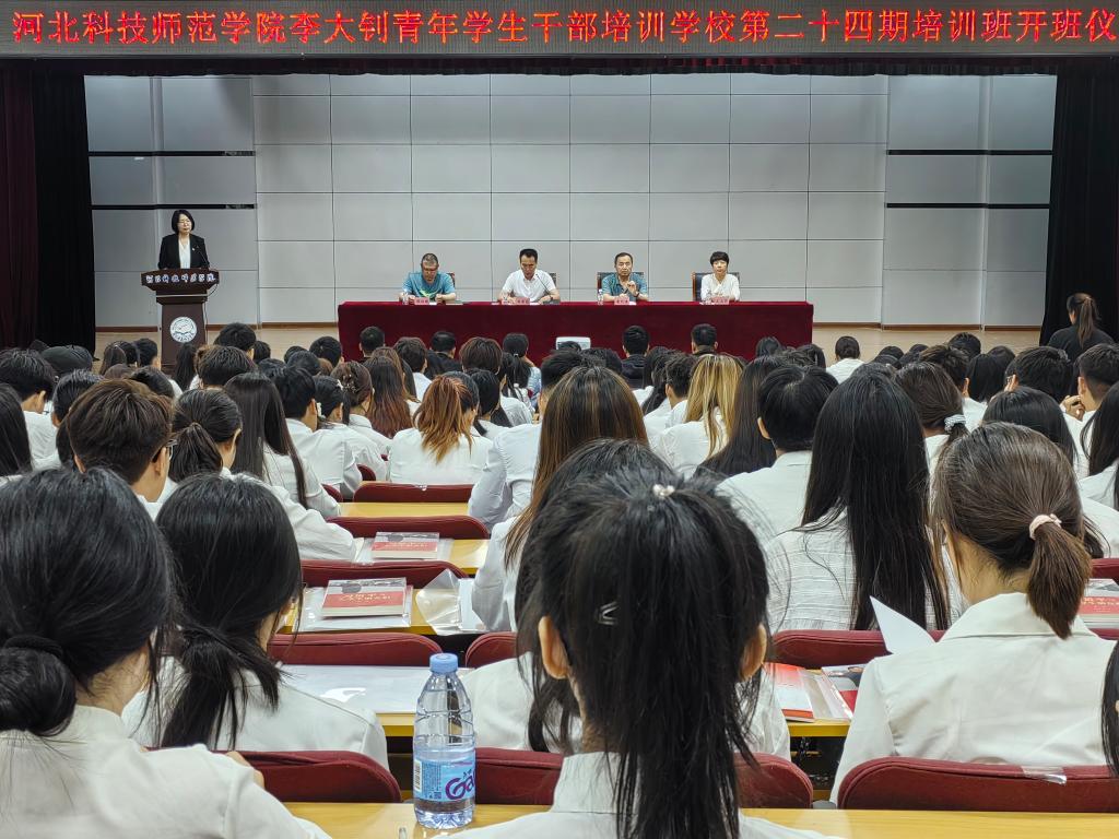 6月6日,我校李大釗青年學(xué)生干部培訓(xùn)學(xué)校(以下簡(jiǎn)稱“李大釗干校”)第二十四期培訓(xùn)班在秦皇島校區(qū)多功能廳開班。學(xué)校黨委常委、副校長(zhǎng)劉榮昌出席開班儀式并講話,黨委組織部、黨委宣傳部、黨委學(xué)工部、馬克思主義學(xué)院主要負(fù)責(zé)同志以及各學(xué)院團(tuán)委書記出席了開班儀式,150名骨干班、青苗班學(xué)員參加本期培訓(xùn)。