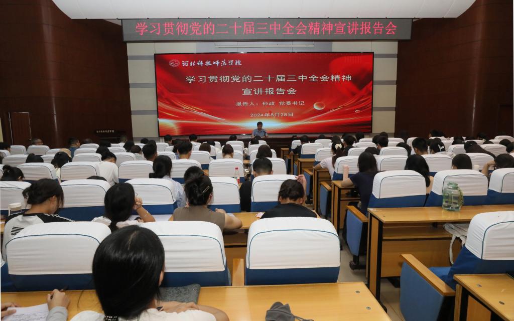 宣講會上,孫政緊緊圍繞學(xué)習(xí)貫徹黨的二十屆三中全會精神,聚焦習(xí)近平總書記對河北的關(guān)心厚愛,結(jié)合自身學(xué)習(xí)工作經(jīng)歷感受、結(jié)合對黨的基礎(chǔ)知識和師生關(guān)注的熱點(diǎn),從深刻認(rèn)識黨的二十屆三中全會重要意義、深入學(xué)習(xí)領(lǐng)會習(xí)近平總書記在黨的二十屆三中全會上的重要講話精神、全面準(zhǔn)確理解《決定》提出的進(jìn)一步全面深化改革重大舉措、全力以赴抓好全會精神貫徹落實等方面,對全會精神進(jìn)行了系統(tǒng)解讀和深入闡釋。