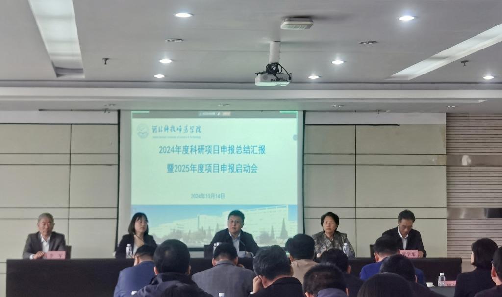 2024年10月14日,我校召開2024年度科研項目申報總結匯報暨2025年度科研項目申報啟動會。校黨委副書記、校長郭旭濤,副校長楊越冬出席會議。科研處、鄉村振興研究中心、研究生部,以及二級學院院長、科研機構主任、主管科研副院長(副主任)、科研秘書、科研處相關工作人員以及各單位科研人員等近300人參加會議。會議由楊越冬主持。