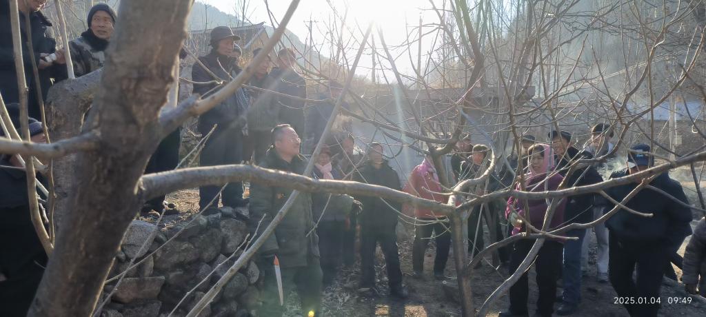 張京政教授將果樹種植田作為培訓現場,面對面解答指導果農在板栗、蘋果冬季修剪過程中遇到的實際問題,用通俗易懂的語言,對新品種引進、剪枝、管理及銷售等方面進行集中培訓。