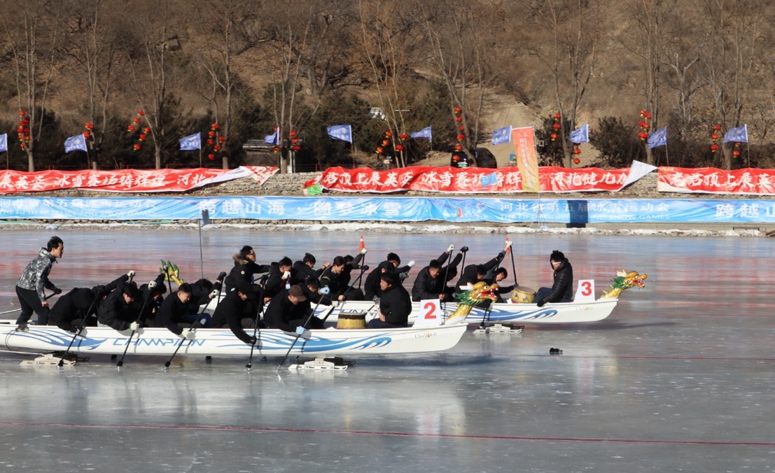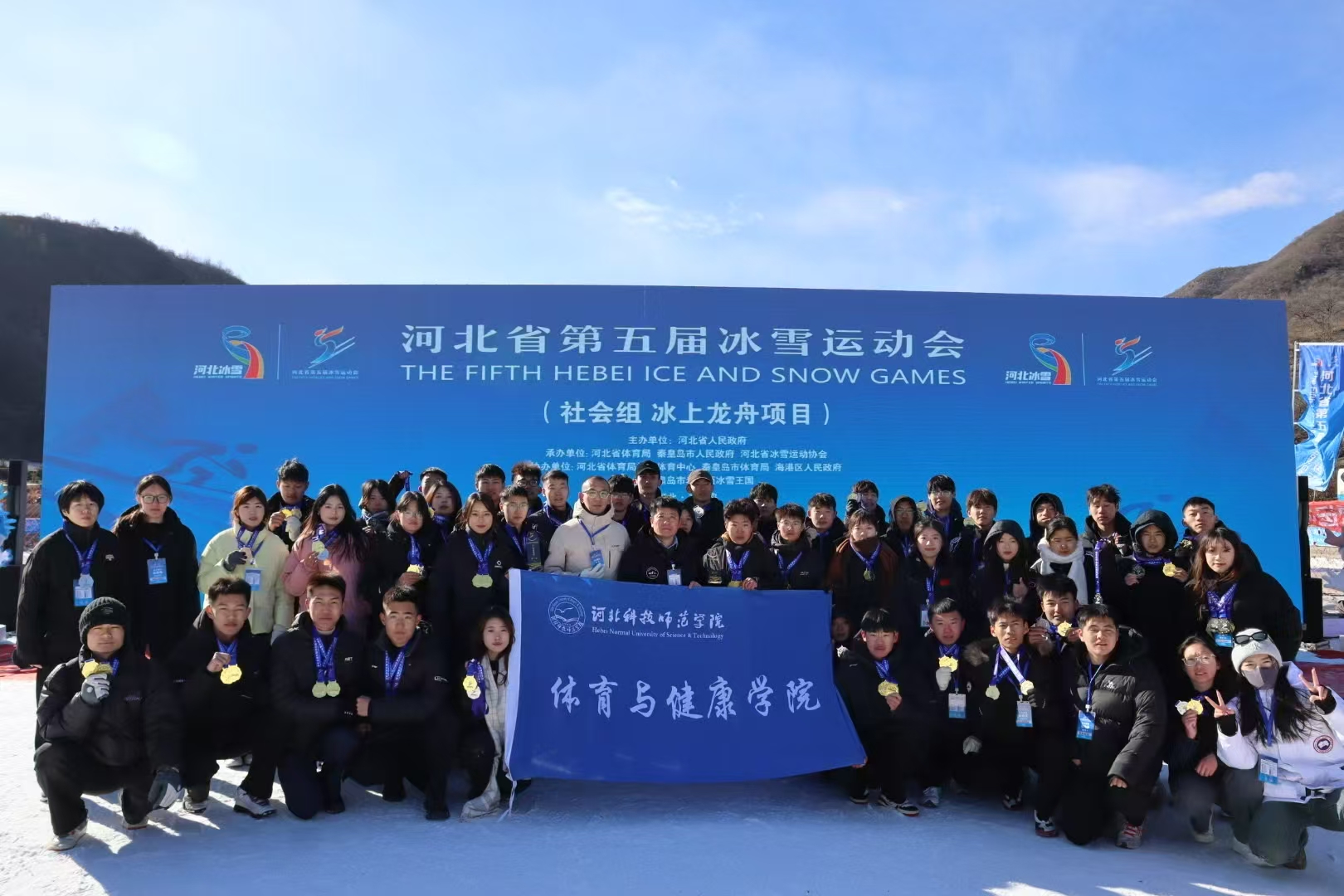 2025年1月7日、8日,河北省第五屆冰雪運動會冰上龍舟項目在秦皇島市老君頂冰雪王國開賽。我校派出了由體育與健康學院教師和50余名學生組成的龍舟代表隊參加了本次比賽。