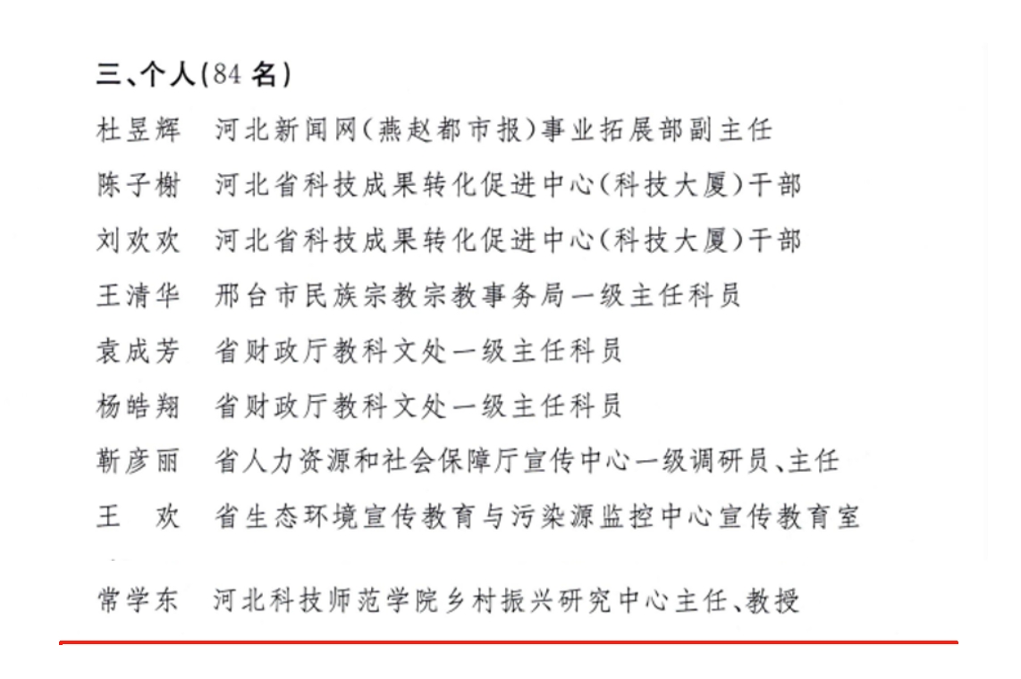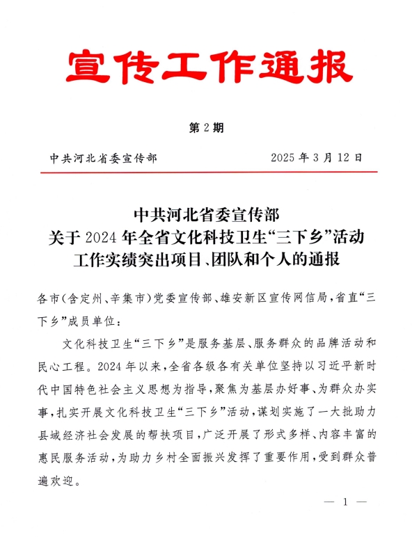 近日,中共河北省委宣傳部公布《關(guān)于2024年全省文化科技衛(wèi)生“三下鄉(xiāng)”活動(dòng)工作實(shí)績(jī)突出項(xiàng)目、團(tuán)隊(duì)和個(gè)人的通報(bào)》,我校鄉(xiāng)村振興研究中心主任常學(xué)東教授獲評(píng)全省文化科技衛(wèi)生“三下鄉(xiāng)”活動(dòng)工作實(shí)績(jī)突出個(gè)人。(編輯:孫艷敏 審核:王榮加)