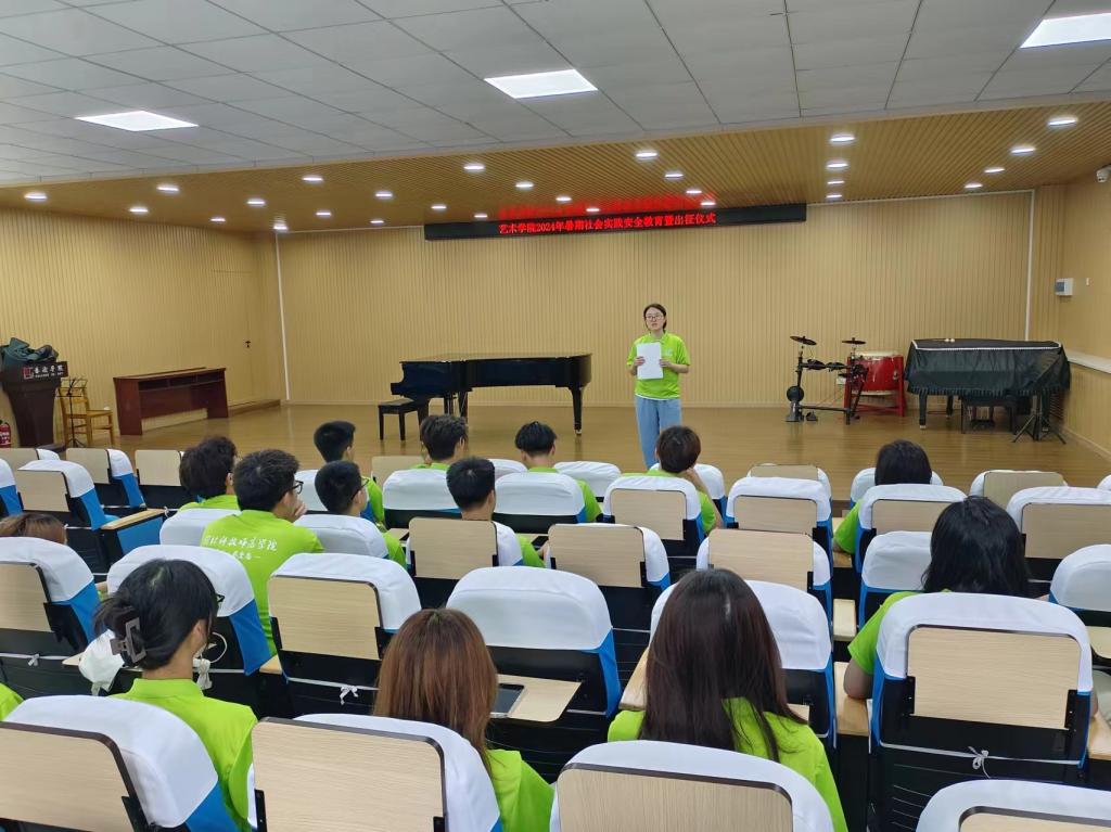 2024年7月8日,藝術學院在藝術樓眾誠報告廳舉辦了2024年暑期社會實踐安全教育培訓暨出征儀式,學院團委負責同志、“如漆而至”、“藝心藝意”暑期實踐團全體成員和指導教師參加了活動。