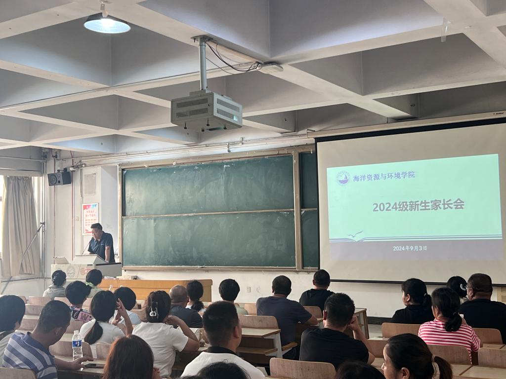2024年9月3日,海洋資源與環境學院召開2024級新生家長會,學院黨政領導班子成員、新生輔導員及新生家長代表參加會議。