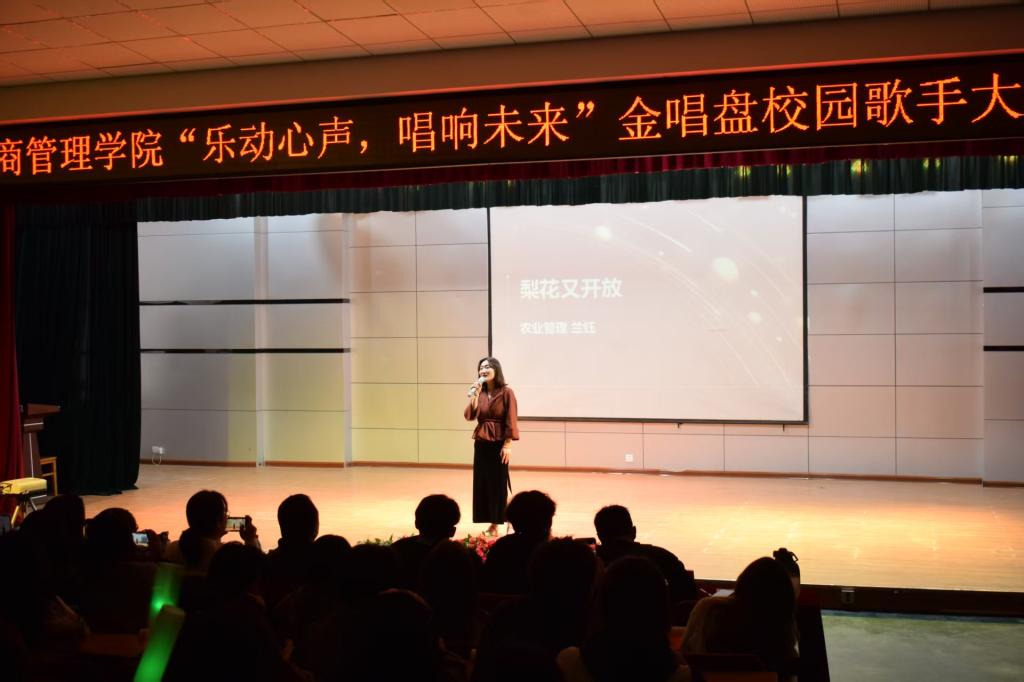 經過初賽、復賽的激烈角逐,10名選手脫穎而出,登上決賽舞臺。決賽分為“先聲奪人”、“誰與爭鋒”、“巔峰對決”三個環節,選手們以多元曲風展現青春風采。1號選手林偉航以一首《椿》拉開序幕,9號選手蘭鈺演唱歌曲《梨花又開放》,悠揚的歌聲收獲陣陣掌聲。最終經過三輪環節比拼,蘭鈺、李余敏、尹爍宇同學分獲前三名。學院將推薦以上三位優秀選手參加校級“金唱盤”歌手大賽的角逐。