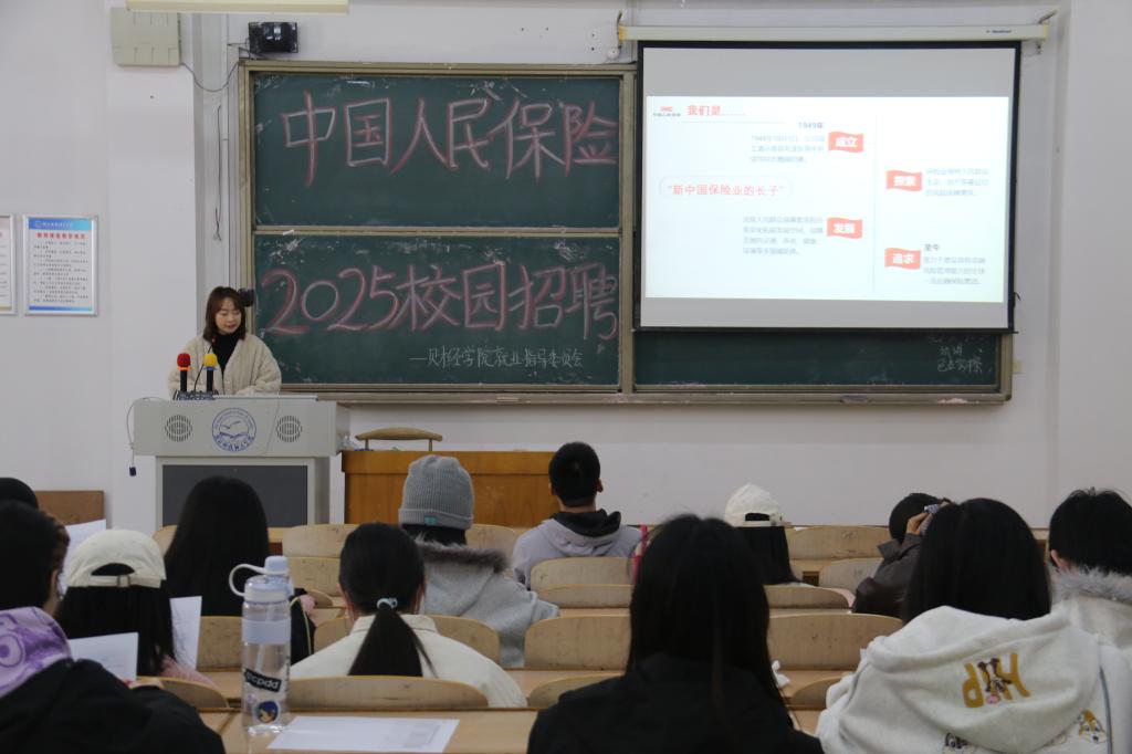 2025年4月8日,財經學院舉辦中國人民保險2025屆校園招聘宣講會。活動通過企業宣傳片、崗位解讀及互動答疑等環節,向應屆畢業生全面介紹公司發展概況、招聘需求及人才培養體系,為后續招聘工作奠定基礎。