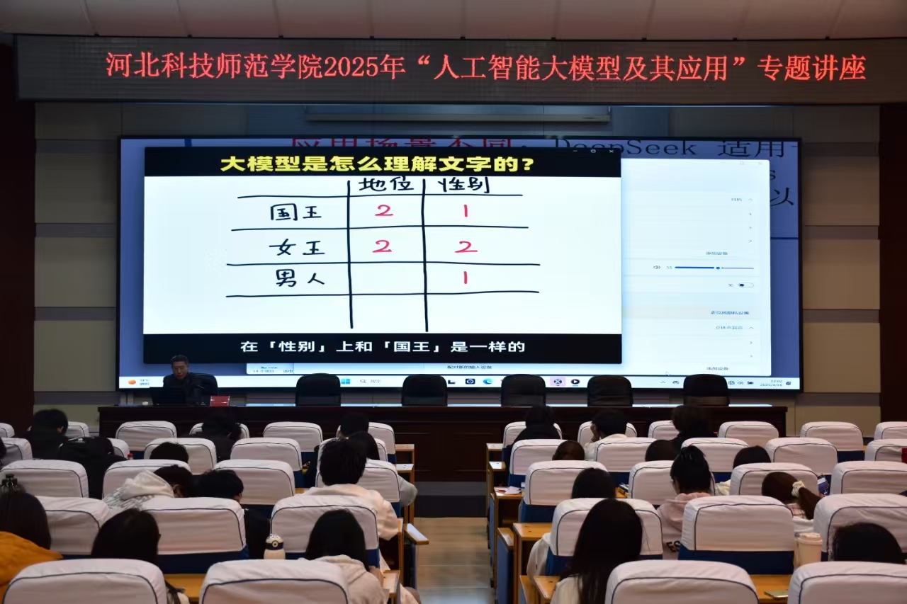 2025年4月16日,學校數學與信息科技學院承辦的“AI新浪潮:校園智創文化矩陣”主題系列活動在秦皇島校區學術交流中心舉辦,《人工智能大模型及其應用》專題講座同期開講。學校網絡技術中心主任、校團委負責同志、數信學院學生工作負責同志及400余名師生代表參加了活動。