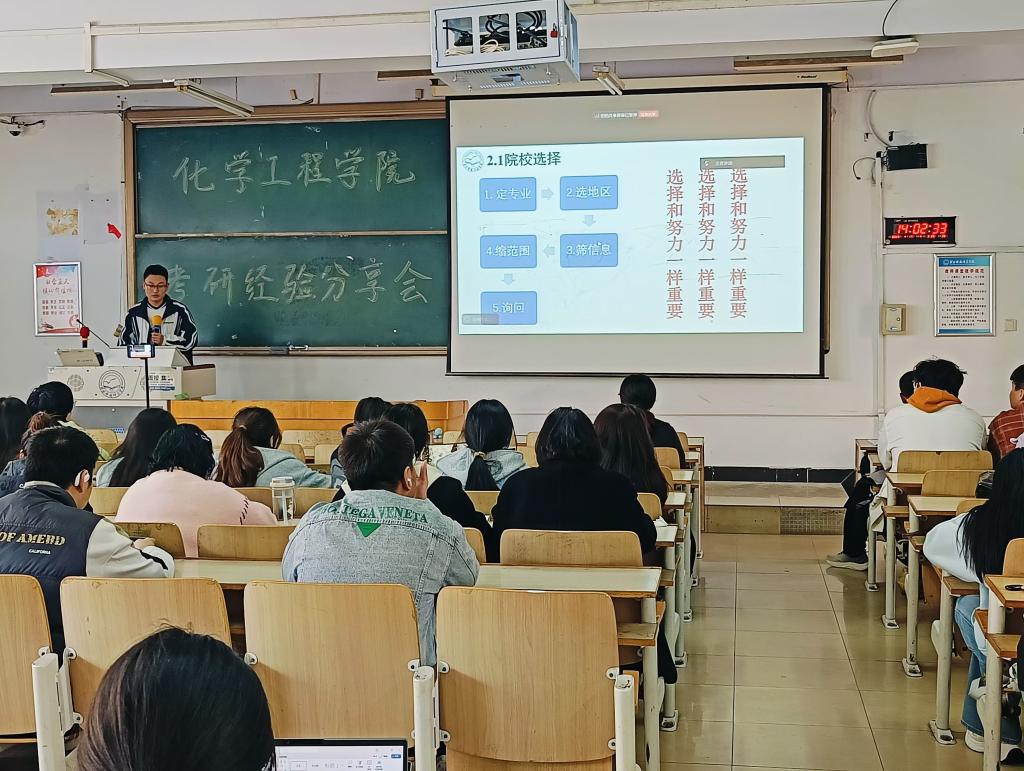 2025年4月17日,為幫助考研學子明確方向,提高考研成功率,化學工程學院舉辦了考研經驗分享會,學院有關領導、優秀考研學生代表、教學部教師、全體輔導員和大三在校學生參加了會議。