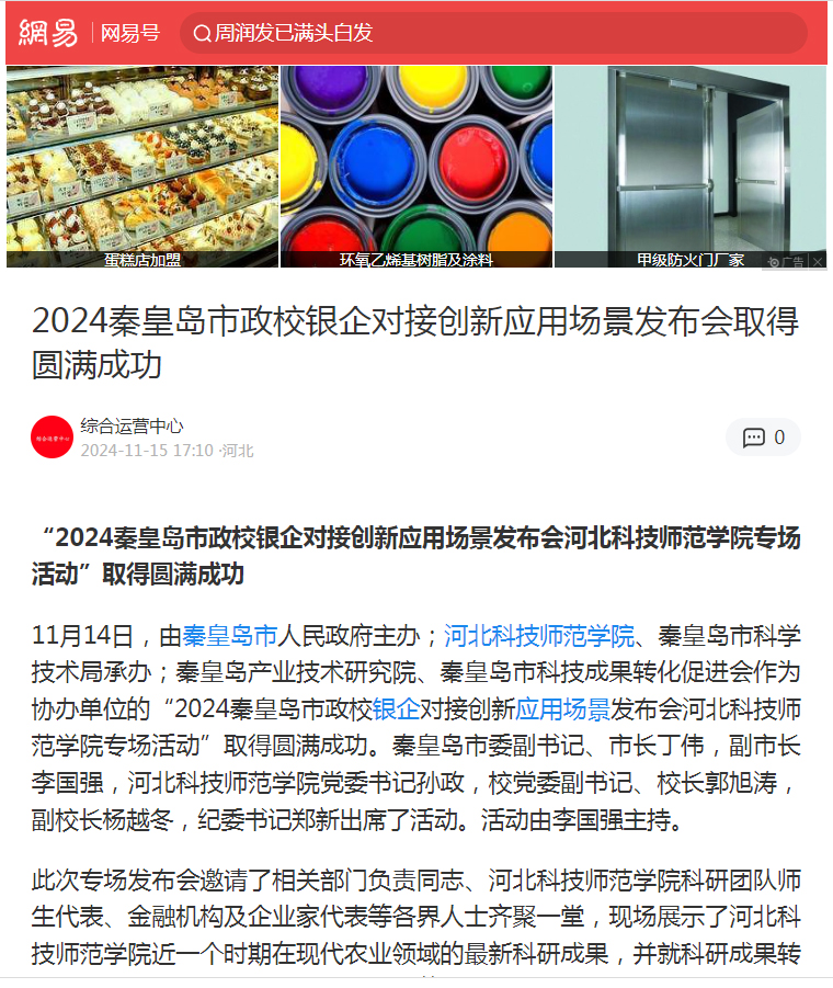 網易新聞:2024秦皇島市政校銀企對接創新應用場景發布會取得圓滿成功